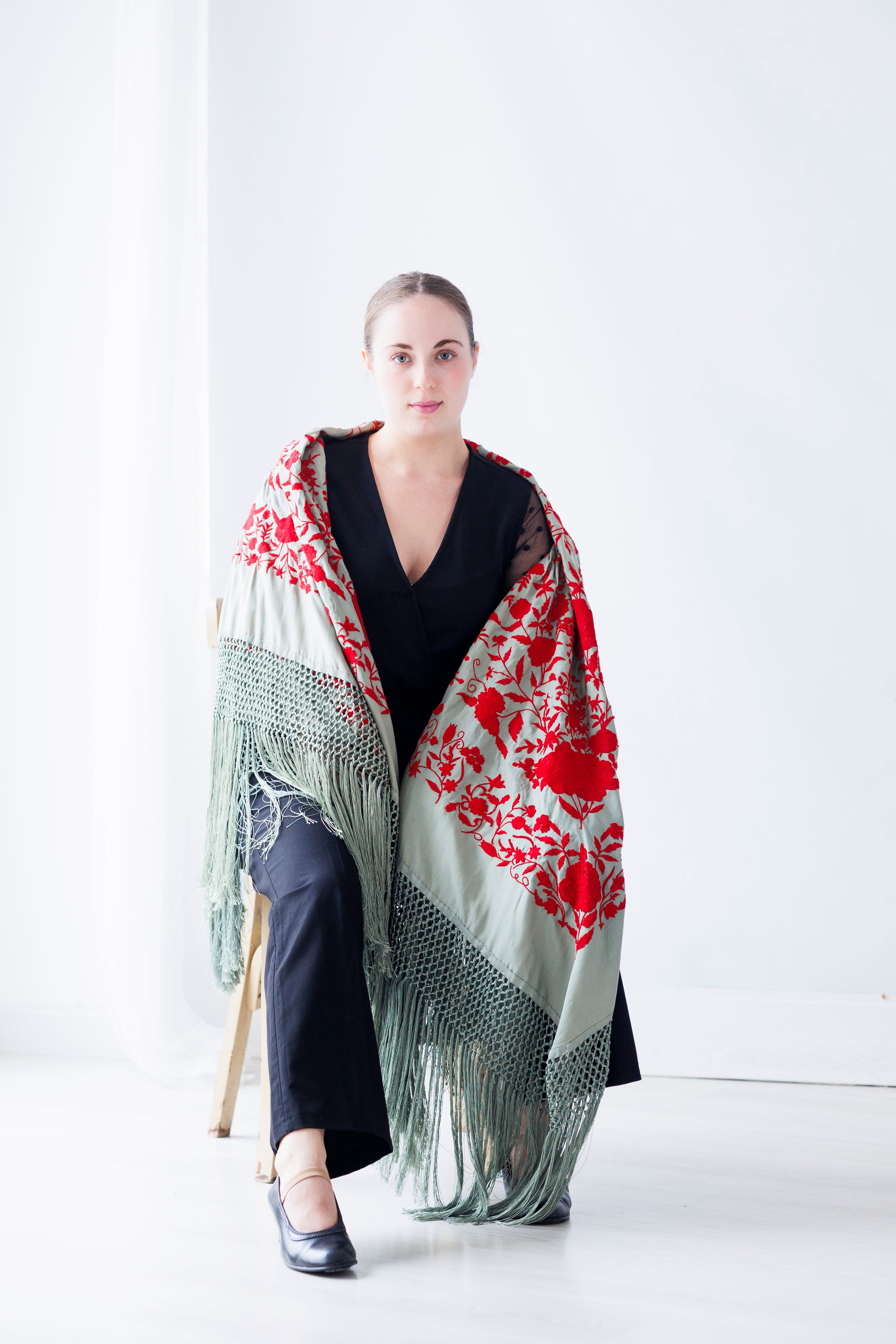 Quien elige un mantón de Manila no solo se viste, se expresa. Cada color, cada hilo y cada movimiento reflejan la personalidad y el carácter único de quien lo porta.